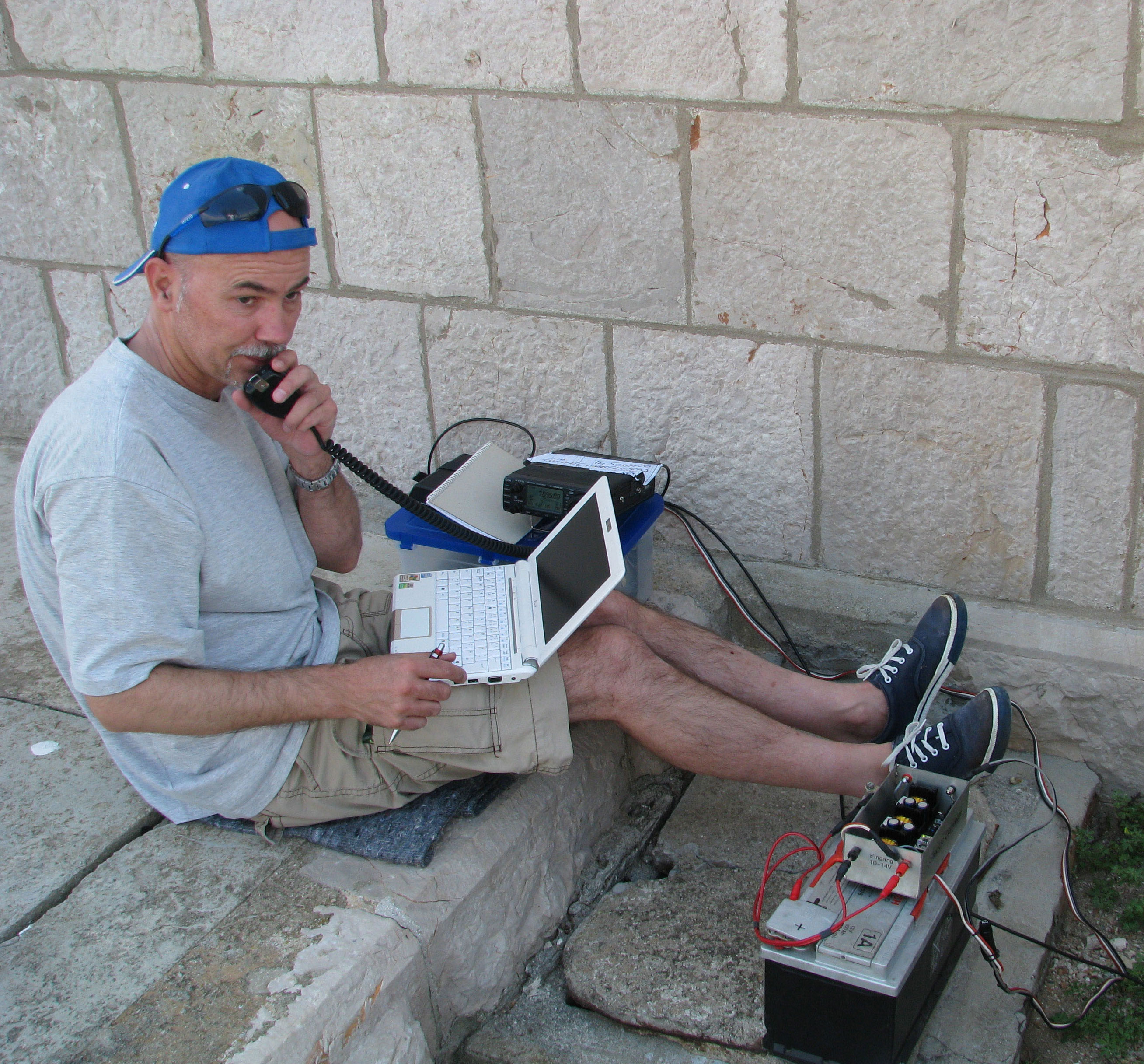 Bei Portabelbetrieb nutze ich eine Konni F10 auf 8m Alumast, eine G5RV 40-10m (Eigenbau) oder GP's für 40 und 80m (Eigenbau an GFK Masten)